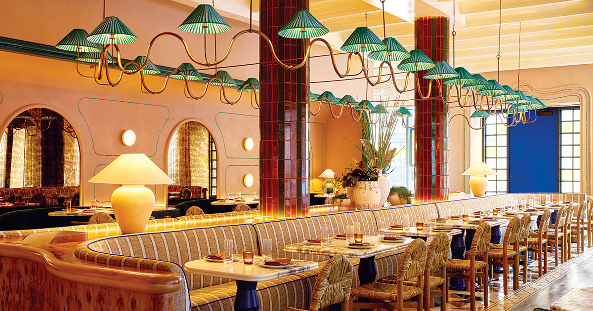 “Daphni became this romantic idea of a woman on vacation,” says Kate Rohrer of interior design firm ROHE Creative, who worked on the Schulson Collective restaurant. “We had a lot of fun with that.”